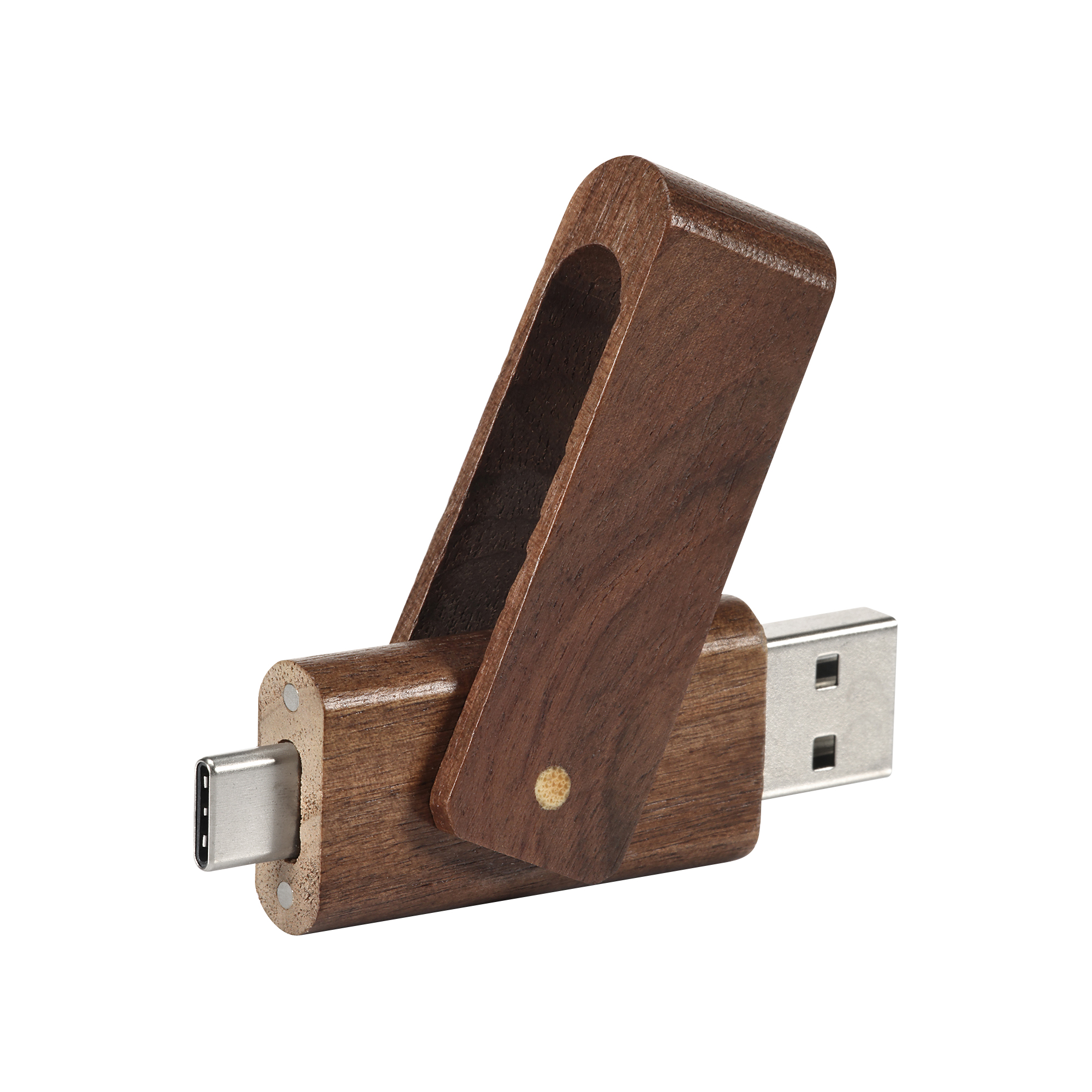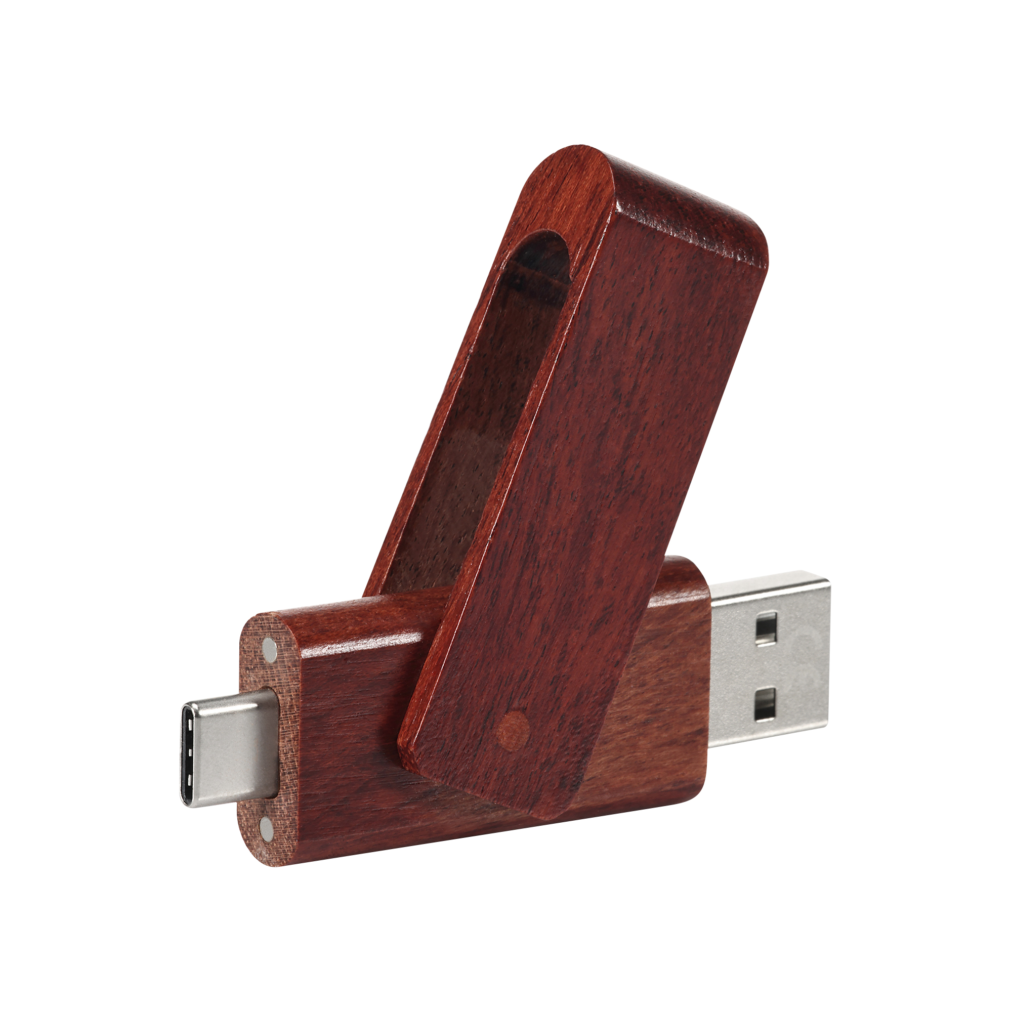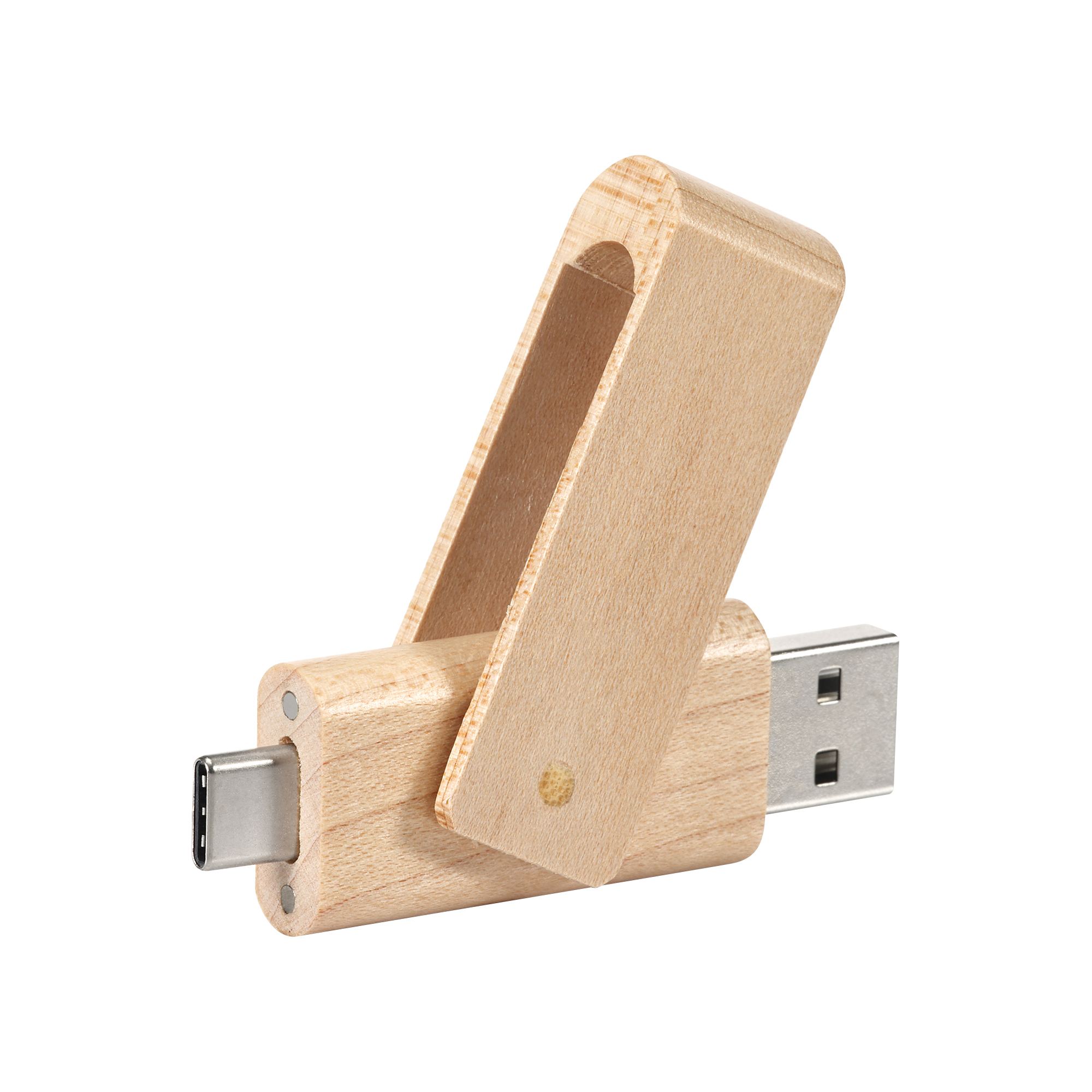Drewniany model pamięć w wersji OTG w przyjaznej środowisku obudowie, która wraz z obrotowym zamknięciem stanowi oryginalne i praktyczne rozwiązanie. Najnowszej generacji, uniwersalne złącze USB Typ C pozwoli na podłączenie do smartphonu, tabletu lub laptopa.